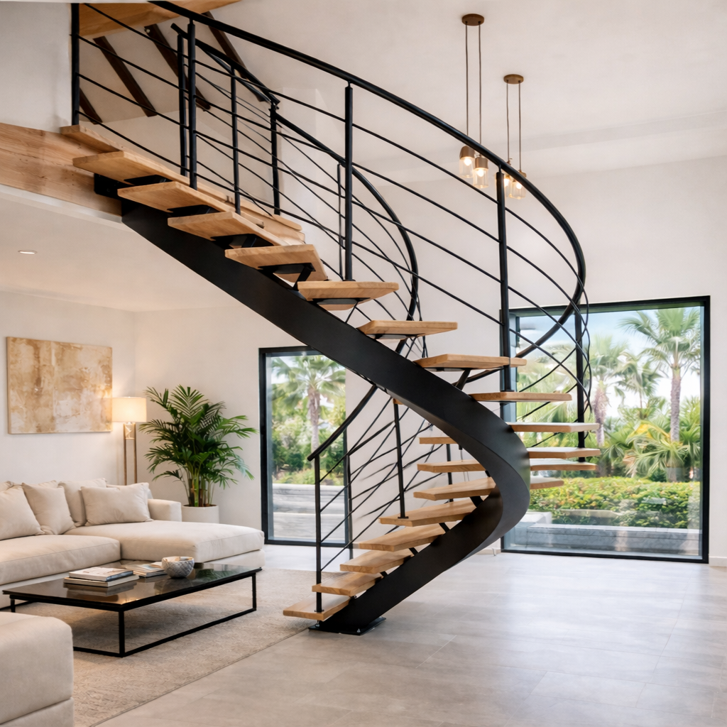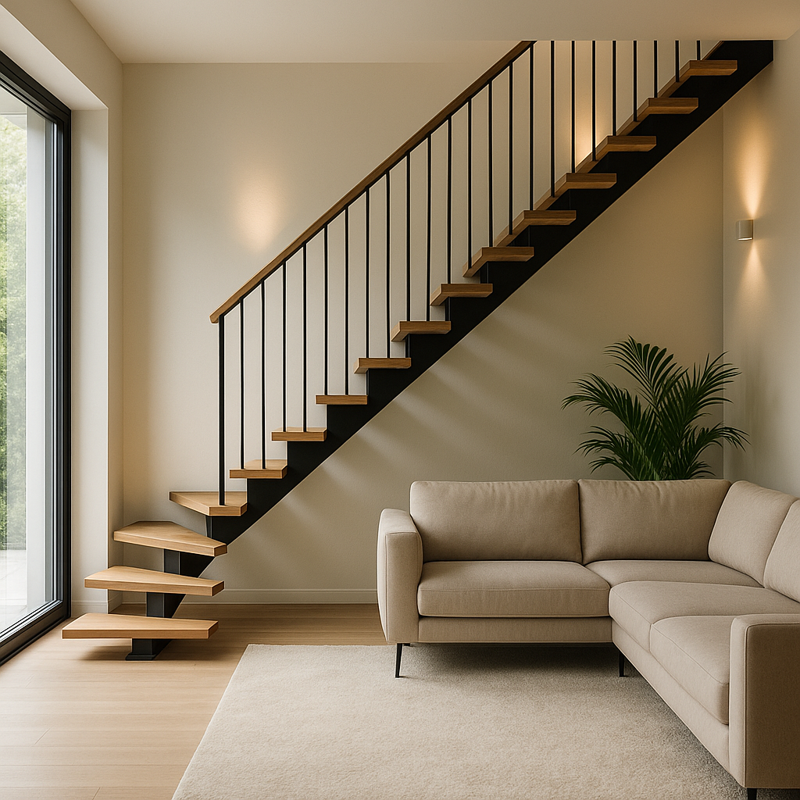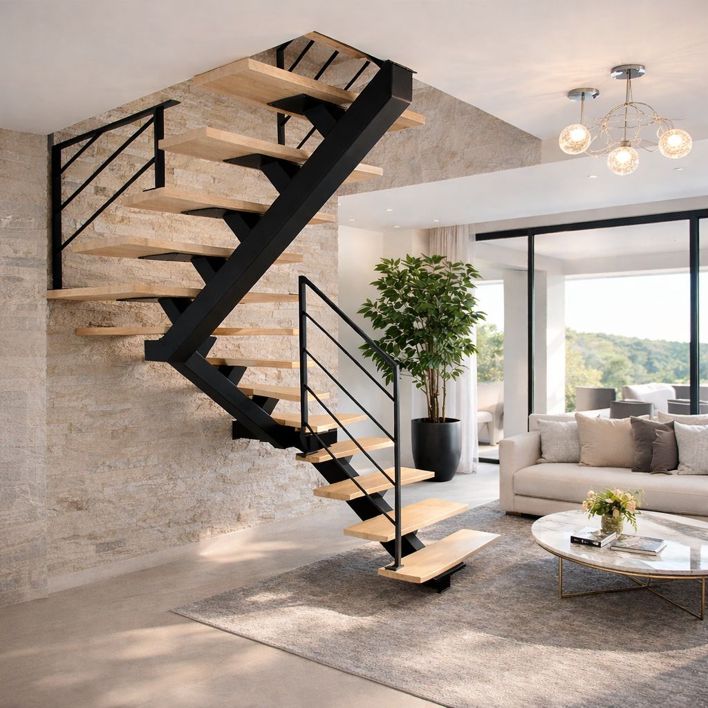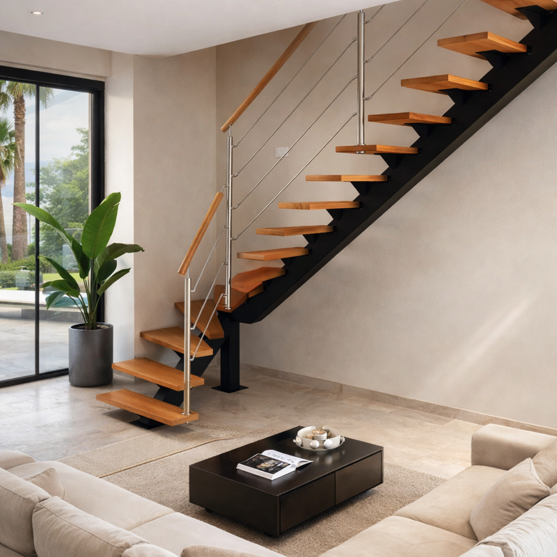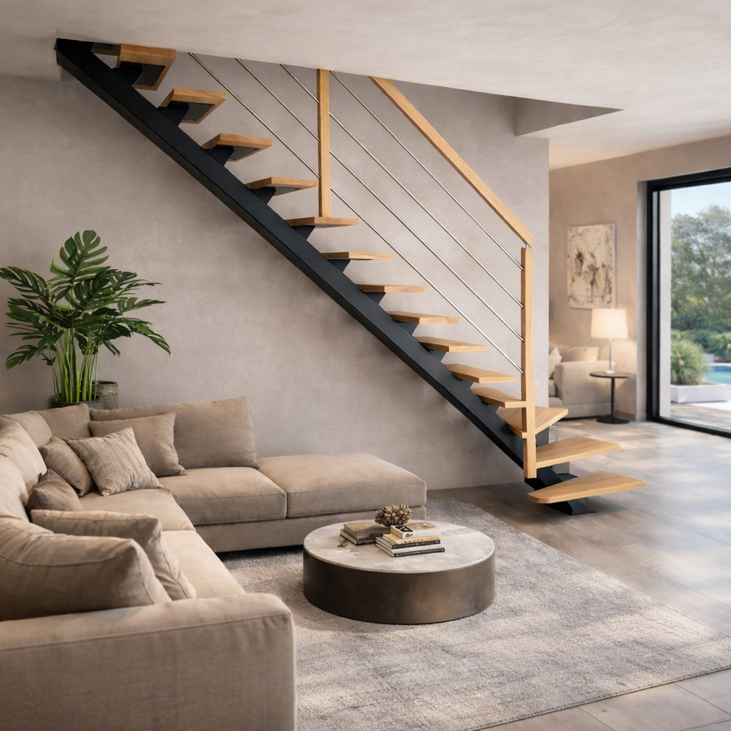 Garde-corps : Lisses inox, poteaux et main courante bois