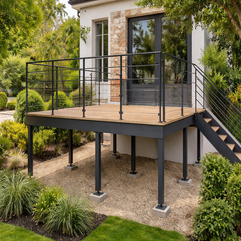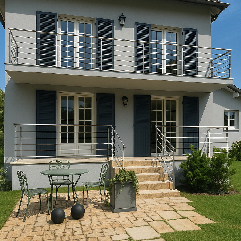 Garde-corps étage : Balustres, poteaux et main courante acier