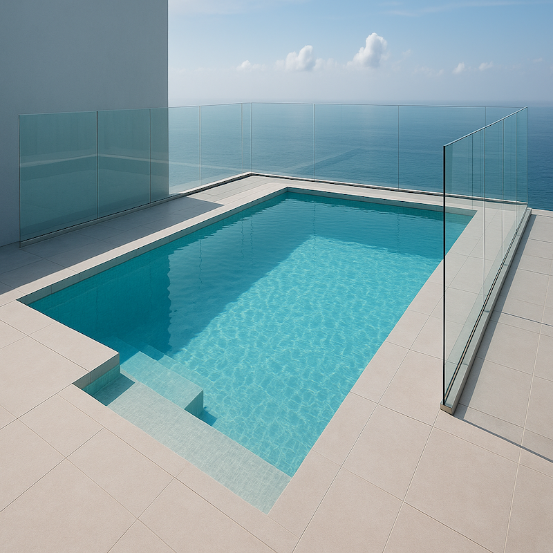 Garde-corps étage : Verre sur pince avec poteaux et main courante inox