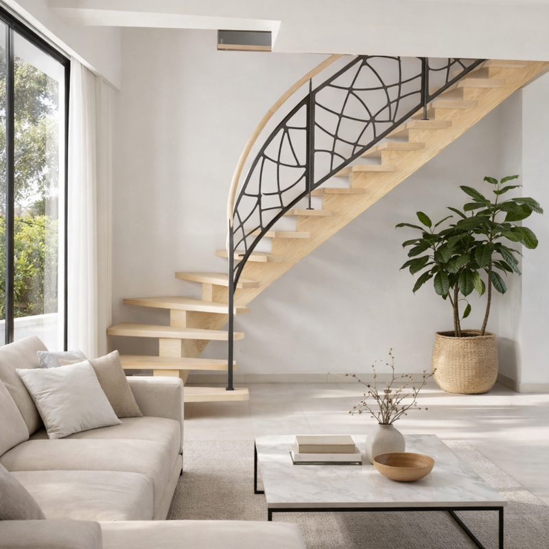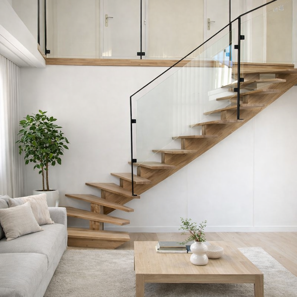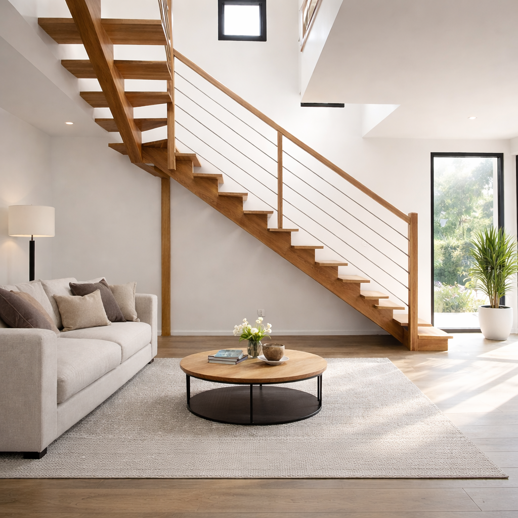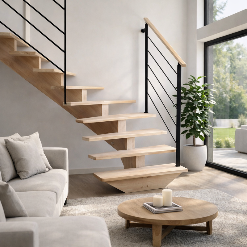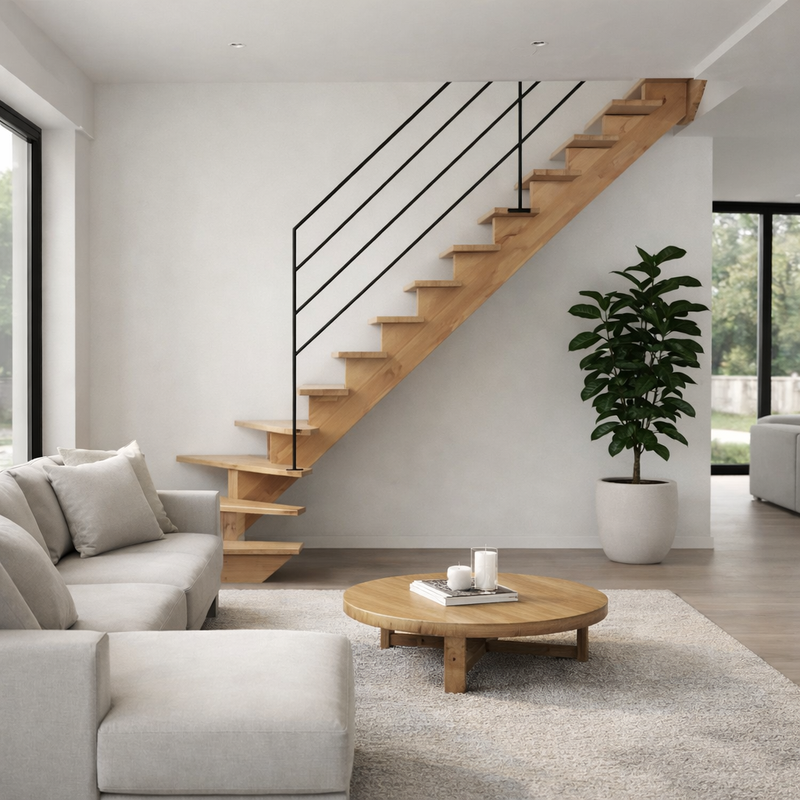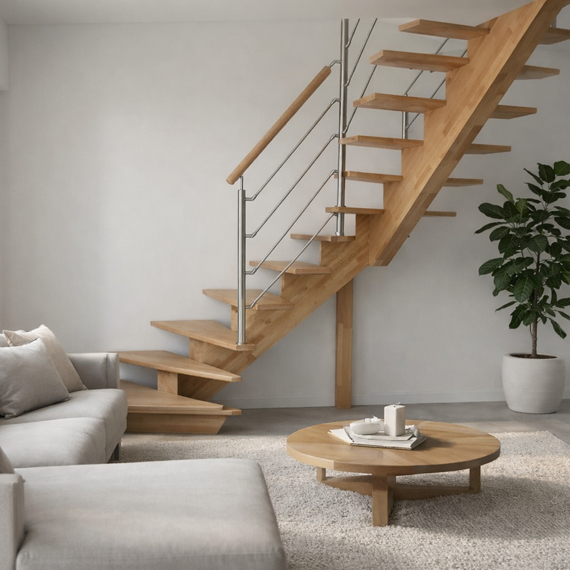 Escalier ¼ tournant à limon central bois